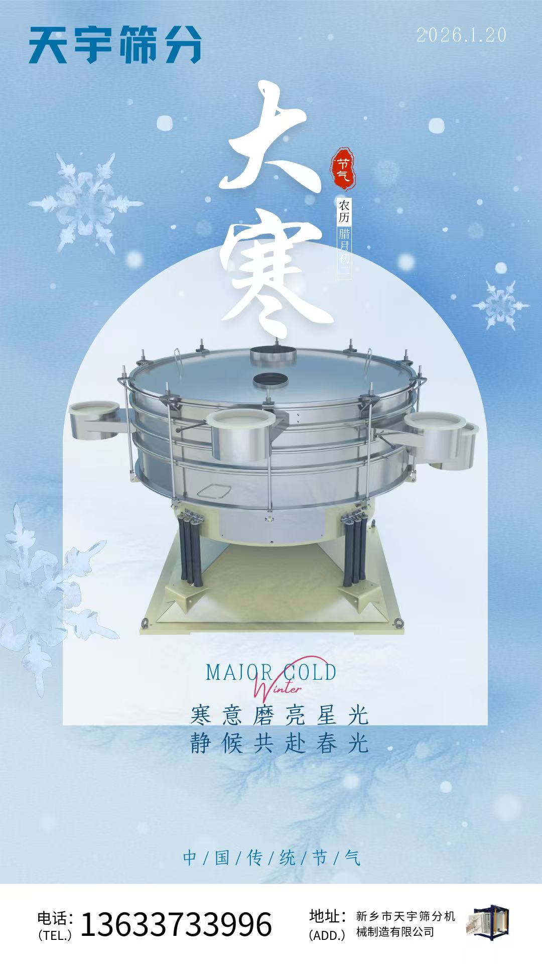?? 大寒已至,氣溫驟降,對工業(yè)生產(chǎn)設備的穩(wěn)定性提出了更高挑戰(zhàn)。新鄉(xiāng)市天宇篩分機械制造有限公司憑借核心技術優(yōu)勢,讓您的生產(chǎn)在寒冬中依舊可靠。