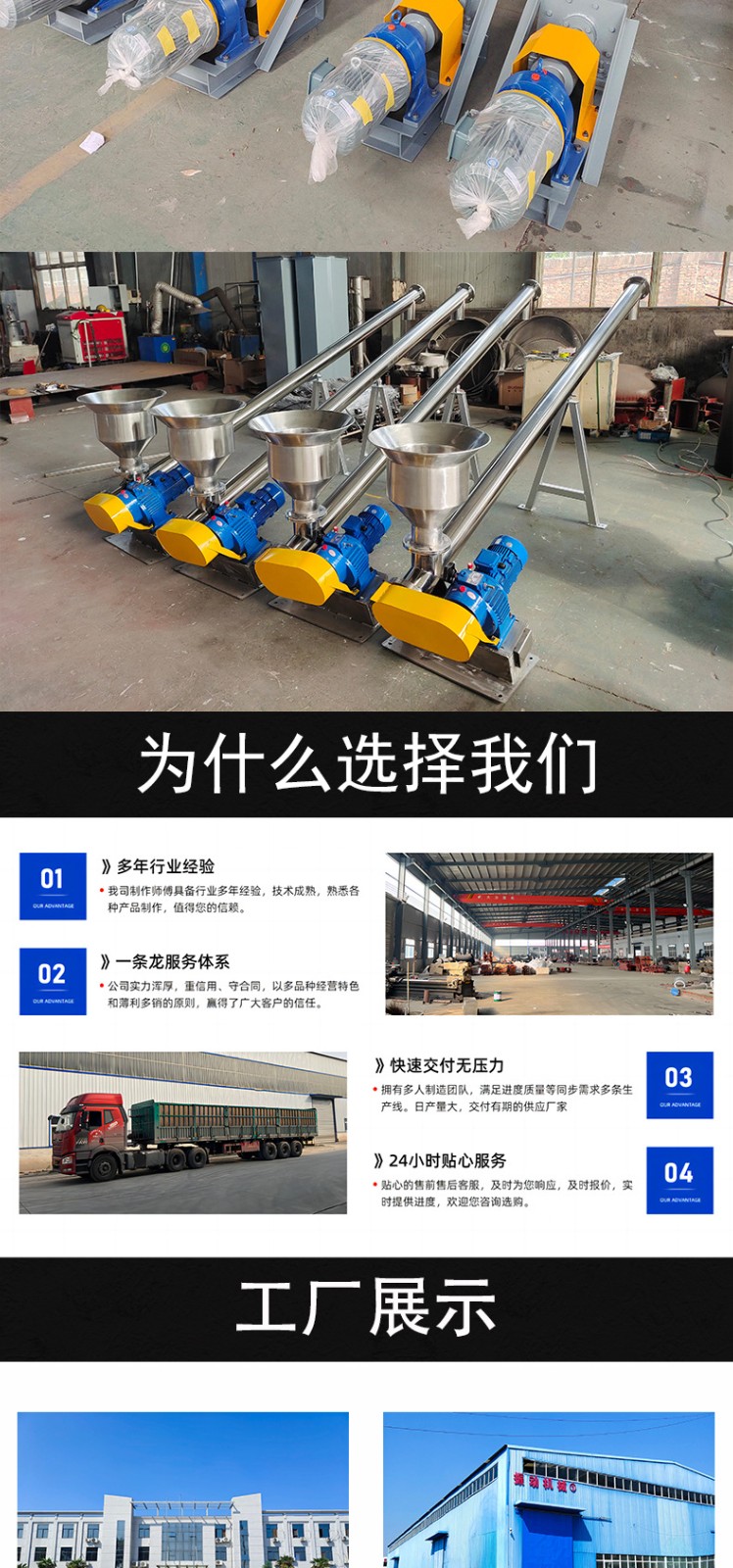 本機(jī)結(jié)構(gòu)簡(jiǎn)單,橫截面尺寸小,密封好,操作方便,維修容易。根據(jù)用戶要求,電機(jī)可安裝于底部,也可安裝于上不,可傾斜輸送,也可水平輸送。